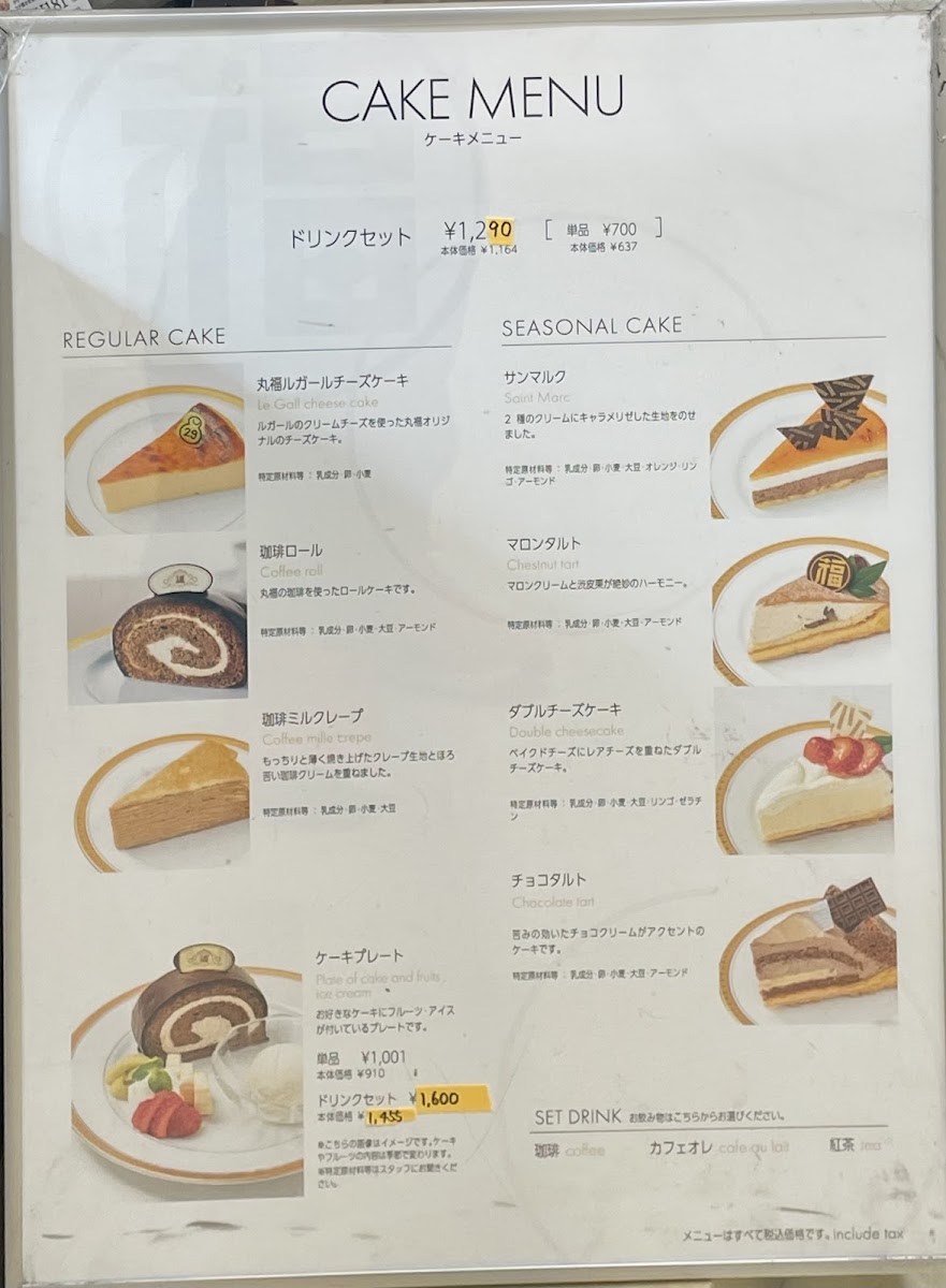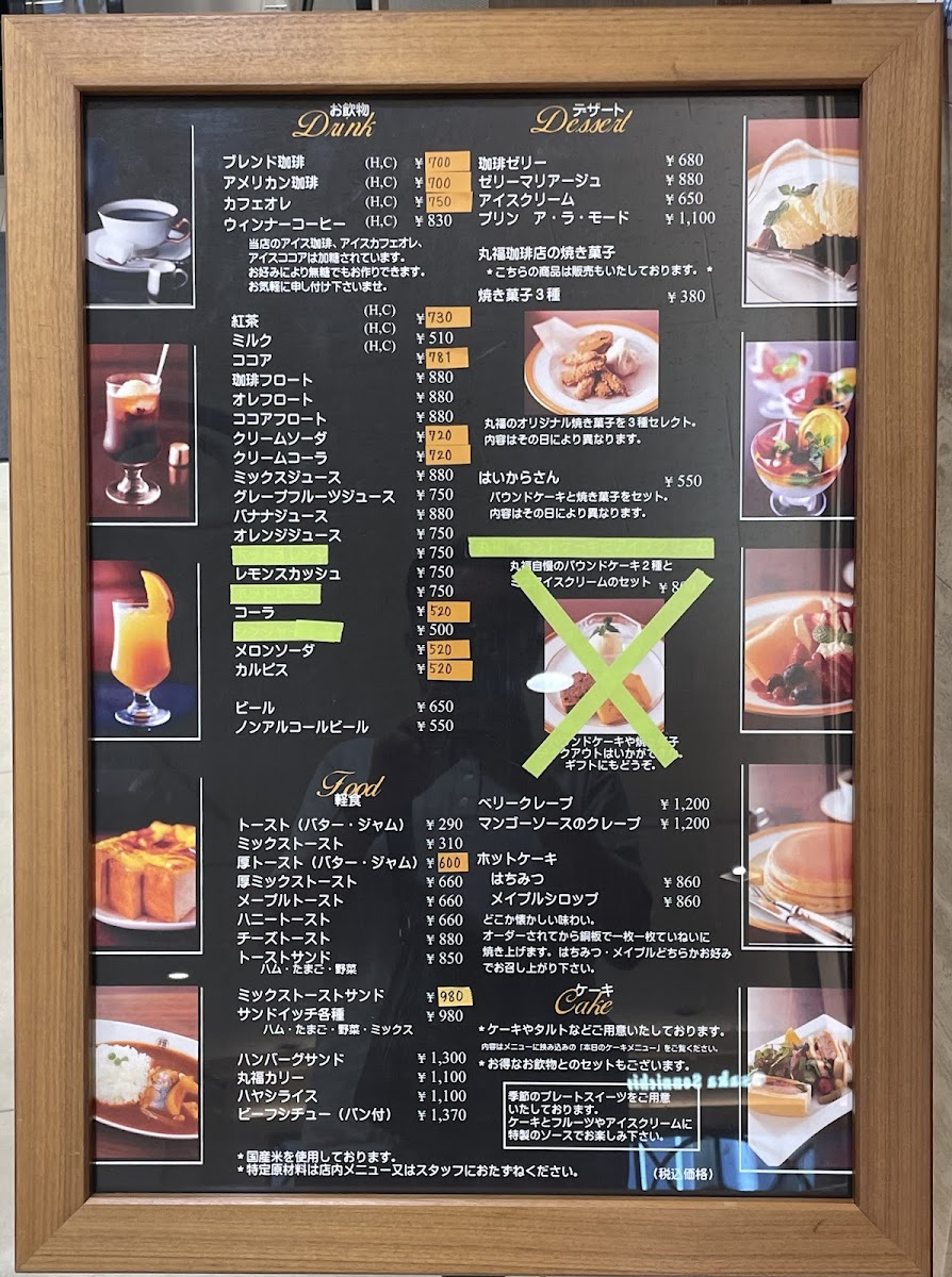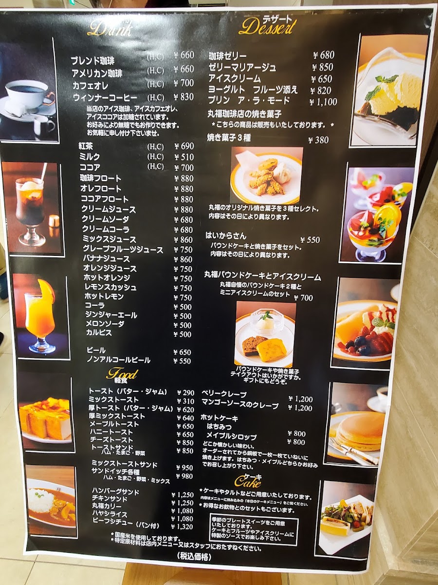 MARUFUKU COFFEE MITSUKOSHI Nagoya Sakae Store Menu