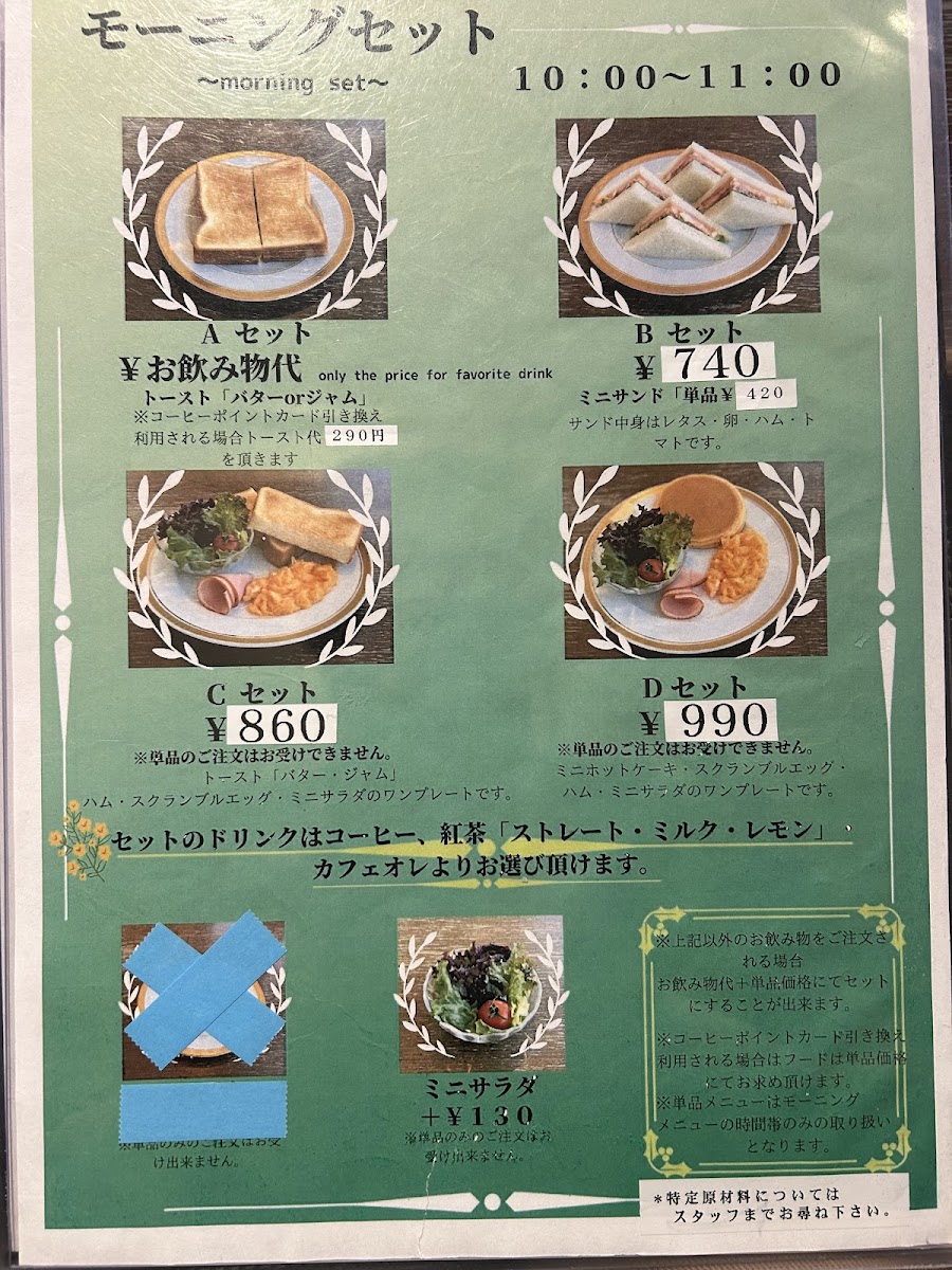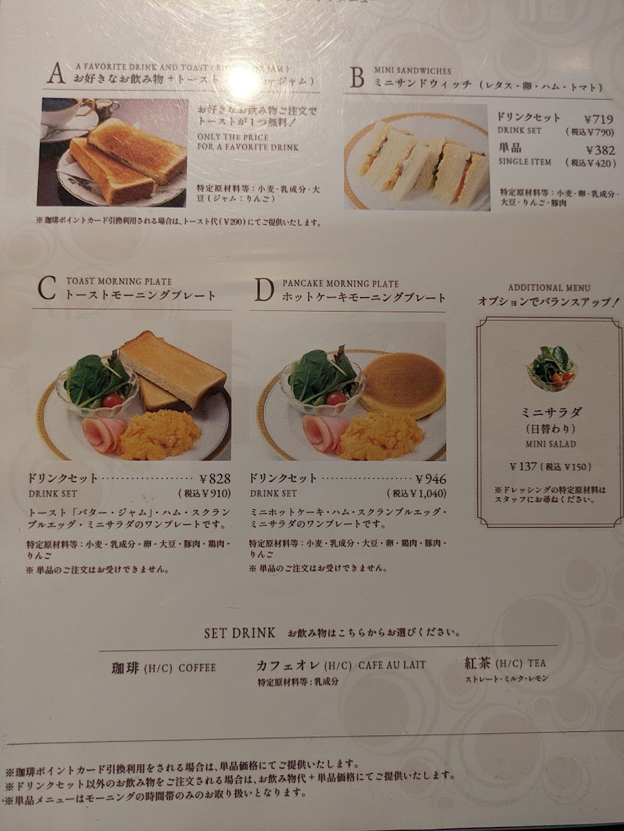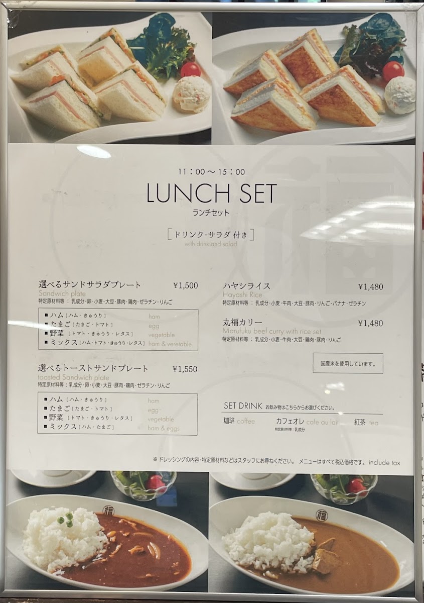 MARUFUKU COFFEE MITSUKOSHI Nagoya Sakae Store Menu